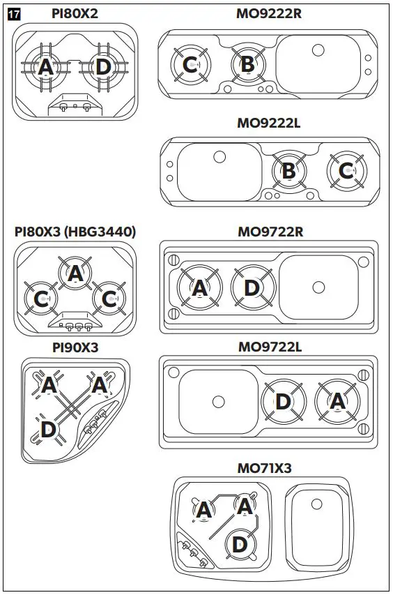 Dysze do kuchenki Dometic HBG3440 - propan-butan